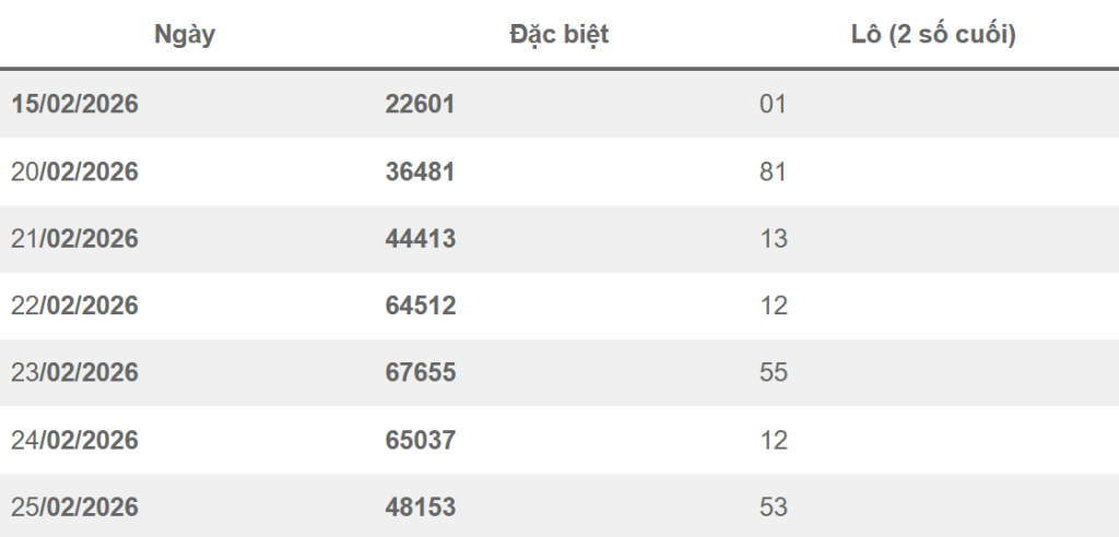 Ví dụ : bảng đặc biệt 7 ngày gần nhất
